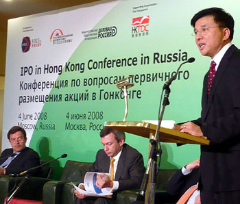 陳家強4日在莫斯科有關(guān)于香港上市的研討會中表示,自1993年內(nèi)地首間企業(yè)在香港上市以來,香港便一直為內(nèi)地企業(yè)集資,以新角色發(fā)揮其促進(jìn)中國內(nèi)地經(jīng)濟(jì)發(fā)展的功能。