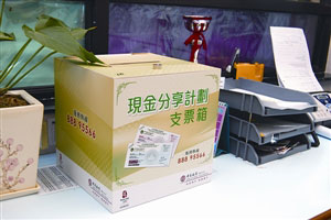另一方面,澳門銀行界也配合“現(xiàn)金分享計(jì)劃”作好準(zhǔn)備。其中,中國銀行澳門分行屬下25個(gè)分、支行均設(shè)立“現(xiàn)金分享計(jì)劃”開戶及兌票服務(wù)專窗、設(shè)置“現(xiàn)金分享計(jì)劃”支票箱。