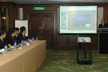 政制及內(nèi)地事務局副秘書長陳偉基(右)20日早向臺灣高雄市政府及旅游界參訪團簡介香港的旅游情況。(圖片來源:香港特區(qū)政府網(wǎng)站)