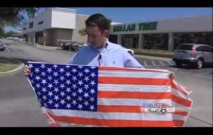 達拉斯地區(qū)當?shù)仉娨暸_WFAA報道稱,一名名叫柴德瑞斯(Tim Childress)的消費者日前到一元商店“Dollar Tree”達拉斯地區(qū)一家分店購買塑料材質的大幅美國國旗,回家才發(fā)現(xiàn)這幅美國國旗上面竟然有61顆星星,比標準版美國國旗多出11顆。