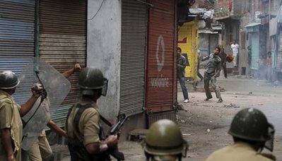 29日,在印控克什米爾地區(qū)安南塔那加(Anantnag),數(shù)千名示威者上街抗議,向安全部隊(duì)人員扔擲石塊,用棍棒襲擊警察,警方則發(fā)射催淚瓦斯回?fù)簦⒈黄乳_(kāi)火,打死3名平民示威者。