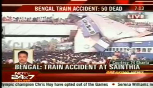 報道稱,事故發(fā)生在距離西孟加拉邦首府加爾各答以北200公里處的比爾普姆。事發(fā)時,一列火車沖向停泊車站內(nèi)的另一列火車的尾部。