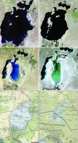 位于烏茲別克斯坦和哈薩克斯坦之間的咸海,曾是世界第四大內(nèi)陸湖,里面生活著至少20種魚類。20世紀(jì)60年代初期,前蘇聯(lián)政府建造了45座堤壩和30000多公里長的河渠,支持在烏茲別克斯坦沙漠平原建造棉花工業(yè)區(qū)。在隨后三十年間,咸?s小了五分之二,周圍的漁村也都變成沙漠荒地。由于水中含鹽量過高,魚類全部滅絕。當(dāng)?shù)仫嬘盟⿷?yīng)陷入危險水平,棉花田使用的殺蟲劑也滲入地下水中。每年高達7500萬噸的有毒浮沉和鹽末被吹到中亞各地。由于哈薩克斯坦建造堤壩,咸海北部已經(jīng)開始恢復(fù),但南部依然處于環(huán)境惡化之中。