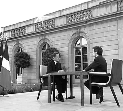 7月12日,法國國家電視二臺(tái)新聞主持人大衛(wèi)·布亞達(dá)斯就政治獻(xiàn)金問題對(duì)法國總統(tǒng)薩科齊進(jìn)行了一次面對(duì)面、一對(duì)一的采訪。