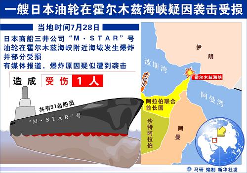 日本國土交通省28日發(fā)布通報,日本商船三井公司所屬M·STAR號大型油輪當?shù)貢r間28日零時30分左右在行經(jīng)霍爾木茲海峽時發(fā)生爆炸,事發(fā)海域屬于阿曼領海。爆炸導致一名船員受傷,船體后部受損,但沒有造成原油泄漏。有船員稱,油輪疑似遭到襲擊。爆炸事件發(fā)生后,M·STAR號轉而駛往阿聯(lián)酋富查伊拉港。