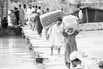 開伯爾—普什圖省的斯瓦特河谷地帶是受災(zāi)最為嚴(yán)重的地區(qū)之一。當(dāng)?shù)氐姆课、醫(yī)院和通信設(shè)施已經(jīng)遭到嚴(yán)重毀壞。由于此前塔利班等武裝組織一直盤踞在這里,自去年巴軍方發(fā)動大規(guī)模清剿行動以后,大批的民眾流離失所,目前回歸的難民剛得到安頓,便又受到洪災(zāi)的侵害,這將進(jìn)一步延緩當(dāng)?shù)刂亟ǖ牟椒ァ?/p>