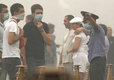 根據(jù)環(huán)保單位的檢測,莫斯科空氣污染的程度,已經(jīng)超出正常值三倍,氣象預(yù)測說這個禮拜狀況應(yīng)該會改善。嚴重的霾害,也影響航空交通,星期天,因為能見度太差,莫斯科各機場總共有九十多架航班延誤或是停飛。