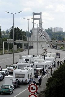 15日的封鎖行動,是吉普賽團體首次發(fā)動大規(guī)模抗議活動。他們出動250多輛汽車、卡車與大篷車,封鎖了法國西南部城市波爾多郊外加倫河上的一座重要橋梁。