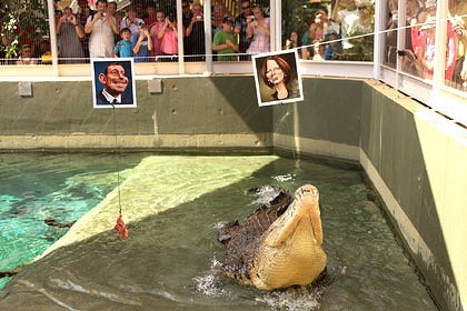 中新網(wǎng)8月20日電 據(jù)外電報(bào)道,澳大利亞一家動(dòng)物園18日讓鱷魚(yú)對(duì)將于21日舉行的大選做出預(yù)測(cè),結(jié)果現(xiàn)任澳大利亞總理吉拉德被鱷魚(yú)看好將在選舉中勝出。