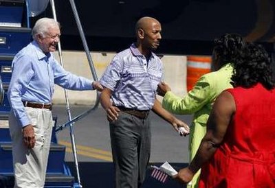 卡特25日抵達(dá)平壤,并與朝鮮最高人民會(huì)議常任委員會(huì)委員長金永南進(jìn)行了交談。美國官員稱,卡特此次訪朝是一次“私人性質(zhì)的人道主義式訪問”,只是為了幫助戈麥斯獲釋。