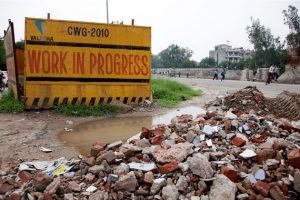 印度當(dāng)?shù)氐耐恋鼗刭徍铜h(huán)境影響的訴訟則進(jìn)一步延緩了籌備工作。如今,50億美元的籌備費(fèi)用已是2003年預(yù)算的10倍,卻也并沒有使新德里的面容有所改觀。它更像是一個(gè)布滿碎片、漏雨屋頂、被挖開的人行道和破敗游泳池的巨大工地。