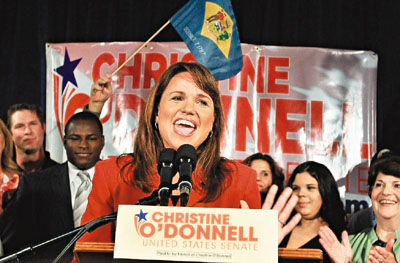 中新網(wǎng)9月16日電 據(jù)臺灣“聯(lián)合新聞網(wǎng)”報道,美國兩大黨14日在多個州舉行期中選舉初選,極端保守派系“茶黨”(Tea Party)初露鋒芒,攻城略地。沒有公職經(jīng)驗、之前屢戰(zhàn)屢敗的該黨候選人克里斯汀.奧唐納爾,14日在特拉華州聯(lián)邦參議員初選擊敗共和黨支持的現(xiàn)任眾議員卡索,震驚美國政壇。