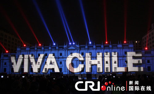 名為“智利,力量”的大型聲光電演出9月16日至21日在首都圣地亞哥總統(tǒng)府廣場(chǎng)舉行。作為智利獨(dú)立200周年慶;顒(dòng)的序幕,演出吸引了大量觀眾。