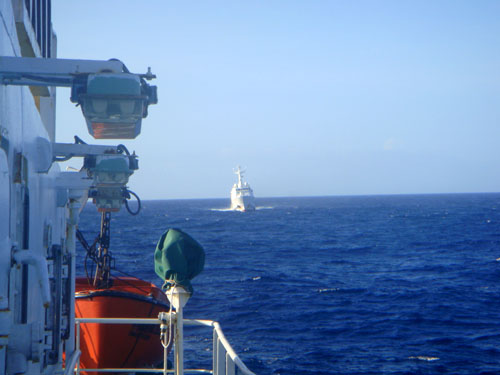 據(jù)“中國漁政202”船政委孫士薦介紹,9月7日晚間,正在滬浙沿海執(zhí)行東海專屬經(jīng)濟(jì)區(qū)巡航任務(wù)的202船奉命調(diào)整航線,駛往釣魚島海域保護(hù)在那里作業(yè)的我國漁船和漁民的人身、財產(chǎn)安全。船長沈長嶺告訴《環(huán)球時報》記者,9月9日深夜,202船在抵近釣魚島諸島途中,又得到隨時準(zhǔn)備接應(yīng)被日本非法抓扣的“閩晉漁5179”漁船返航的指示。