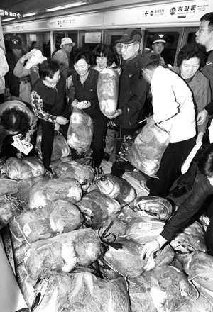 韓國地鐵公司嗅到了白菜中蘊藏的巨大商機,近日在地鐵站里擺了個市場,賣起了白菜。