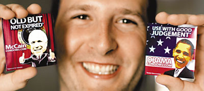 美大選花絮:奧巴馬麥凱恩頭像都上了避孕套(圖)