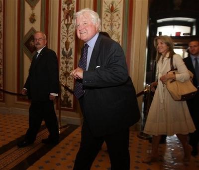 他在表決前,與夫人維多利亞一起步入國會山莊,然后由民主黨準總統(tǒng)候選人奧巴馬參議員、馬薩諸塞州參議員克里,以及他的兒子、羅得島州眾議員帕特里克•肯尼迪陪同來到參院大廳。