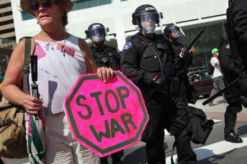 數(shù)百名反戰(zhàn)示威者二十四日在丹佛市集會