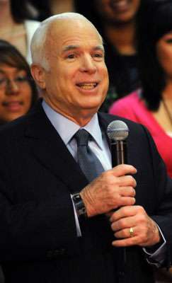中新網(wǎng)8月27日電 就在美國民主黨總統(tǒng)候選人奧巴馬的妻子米歇爾二十五日在丹佛發(fā)表演說前數(shù)小時(shí),共和黨總統(tǒng)候選人麥凱恩宣布,他的妻子辛迪正前往格魯吉亞進(jìn)行訪問。此外,麥凱恩可能會提前在本周四宣布競選拍檔,以打擊在當(dāng)天發(fā)表接受提名演說的奧巴馬氣勢。