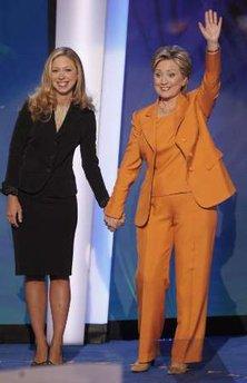 希拉里趁機推崇她的先生,說民主黨過去的政績?nèi)裼心抗捕,最近的例子就是一九九二年到二零零零年的克林頓政府。全場又是一片歡呼,坐在貴賓席的克林頓聽到笑得非常開心。