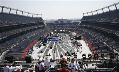 據(jù)香港《明報(bào)》綜合外電報(bào)道,奧巴馬選擇在美式足球隊(duì)丹佛野馬隊(duì)主場(chǎng)“景順”球場(chǎng)發(fā)表演說,工作人員在場(chǎng)中央搭了一個(gè)環(huán)形講臺(tái),并將一架“空軍一號(hào)”仿制品運(yùn)到場(chǎng)。講臺(tái)設(shè)計(jì)一如演唱會(huì)舞臺(tái),并以白色石柱群作布景。柱群是華府多個(gè)政府建筑的標(biāo)志,國會(huì)大樓及白宮亦有多根大柱豎立,但布景曝光后,卻被共和黨拿來跟希臘神殿相提并論。