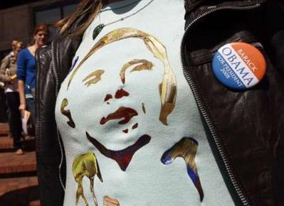 10月8日,一名居住在阿根廷的美國(guó)選民身著印有奧巴馬頭像的T恤。