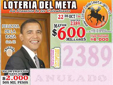 中新網(wǎng)10月24日電 綜合報(bào)道,美國(guó)總統(tǒng)大選進(jìn)入最后沖刺階段,民主黨總統(tǒng)候選人奧巴馬各項(xiàng)民調(diào)持續(xù)領(lǐng)先,大有直取白宮之勢(shì)。奧巴馬在海外的人氣也是比許多人想象中更強(qiáng)勁,哥倫比亞一個(gè)城市便把奧巴馬的肖像印在了所有彩票上。