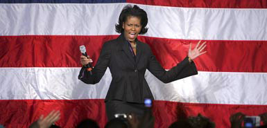 隨著美國民主黨總統(tǒng)候選人巴拉克·奧巴馬當(dāng)選總統(tǒng)的呼聲越來越高,奧巴馬的妻子米歇爾也成為媒體關(guān)注的焦點(diǎn)。如果奧巴馬當(dāng)選總統(tǒng),那么米歇爾也將創(chuàng)下兩項(xiàng)紀(jì)錄:第一位非洲裔總統(tǒng)夫人、個(gè)子最高的“第一夫人”。