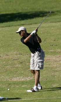 奧巴馬在夏威夷瓦馬納羅完整地打了18洞,球場標準桿為72桿。不過,美國新任總統(tǒng)18洞打出的桿數(shù)沒有被曝光。雖然奧巴馬在夏威夷開球時用了一根很強勁的一號木,不過他的真實水平如何還是個謎。不過,有一點可以肯定,奧巴馬打高爾夫時是個左撇子,他在第9洞停下來休息時吃了一些點心。在被問到球打得如何時,奧巴馬笑著回答,“打得沒那么好!