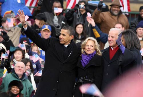 奧巴馬與拜登將在威明頓和巴爾的摩參加慶;顒(dòng)后,預(yù)定于當(dāng)晚7時(shí)抵達(dá)華盛頓聯(lián)邦車站,展開他未來四年的“改變”之旅。