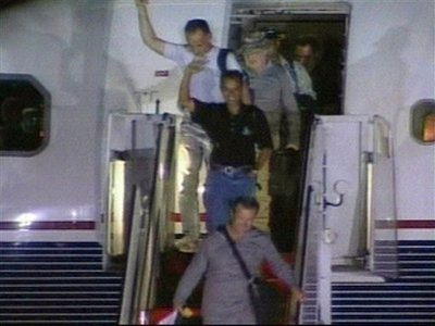 中新網(wǎng)4月16日電 據(jù)美聯(lián)社報(bào)道,曾與索馬里海盜“親密接觸”的美國(guó)“梅爾斯克•阿拉巴馬”號(hào)(Maersk Alabama)船員于當(dāng)?shù)貢r(shí)間16日凌晨自肯尼亞乘坐專機(jī)返回美國(guó),受到熱情的歡迎。