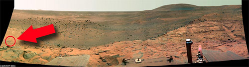 不久前,美國(guó)宇航局“勇氣號(hào)”火星探測(cè)器發(fā)回一系列火星表面的照片,有天文愛(ài)好者竟在其中一張照片中發(fā)現(xiàn)一個(gè)類似女性外形的“火星人”。難道真的有“外星人”?