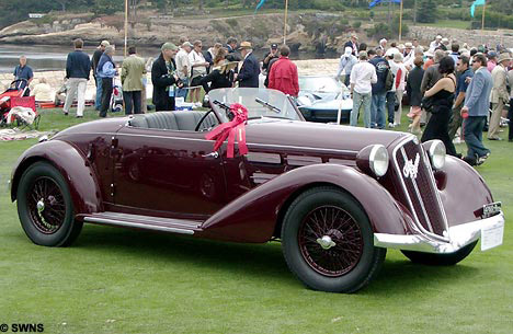 這輛舉世無雙的兩座跑車是阿爾法·羅密歐當(dāng)年作為禮物送給墨索里尼的,因為在“大蕭條”時期,墨索里尼曾對轎車生產(chǎn)業(yè)做出過一定貢獻(xiàn)——出面干涉使生產(chǎn)商從瀕臨倒閉的境地“起死回生”。墨索里尼后來將這輛跑車的發(fā)動機(jī)功率由原來的68馬力改進(jìn)到95馬力。
