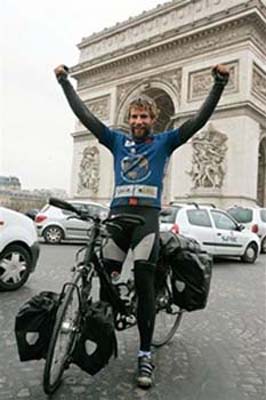 中新網(wǎng)2月18日電 騎著單車(chē)環(huán)球世界長(zhǎng)達(dá)6個(gè)半月,你做得到嗎?蘇格蘭一名25歲的男子博蒙特(Mark Beaumont)做到了,而且他刷新原來(lái)的紀(jì)錄保持人,以195天騎單車(chē)完成約2萬(wàn)8968公里的路程,創(chuàng)下新世界紀(jì)錄。