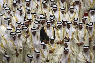 由于沙特法律規(guī)定,婦女不得同陌生男子在公共場合“混跡一處”。因此24日的婚禮現(xiàn)場上,不見漂亮新娘,只有身穿白色傳統(tǒng)禮服的新郎出席。盡管如此,新人們仍得到了政府給予的家具、免費入住飯店兩夜、汽車保險,外加部分聘妻禮金等作為贈禮。