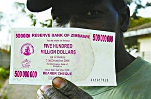 津巴布韋吸引世界眼球的不僅是由于選舉造成的政治危機(jī),還有其高不可攀的通貨膨脹所帶來的經(jīng)濟(jì)動(dòng)蕩。津中央銀行16日公布的數(shù)據(jù)顯示,該國(guó)通脹率已達(dá)到2200000%,此外由于印鈔紙供貨商中斷貨源,津政府未來或?qū)ⅰ盁o錢”可用。