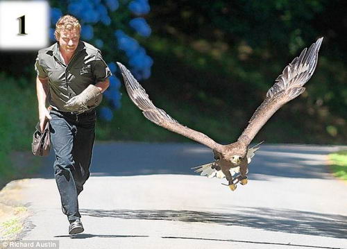 白尾海雕九十年代初期在英國絕跡,不過在啟動重新引進(jìn)項(xiàng)目后,蘇格蘭地區(qū)已有一些白尾海雕。這只名為埃維的白尾海雕是在比利時人工飼養(yǎng)的,“她”兩歲的時候來到亨吉斯在達(dá)特穆爾的養(yǎng)鷹場。養(yǎng)鷹場的所有鳥都要經(jīng)常放飛鍛練,但亨吉斯也采取了一些措施以確保它們獲得一些“玩樂時間”。