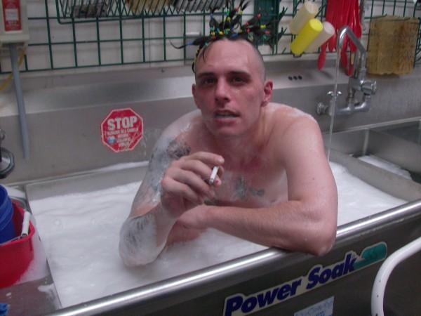 當(dāng)時(shí)片中男主角自稱(chēng)是“動(dòng)蕩先生”(Mr.Unstable),浸浴是為了慶祝生日。