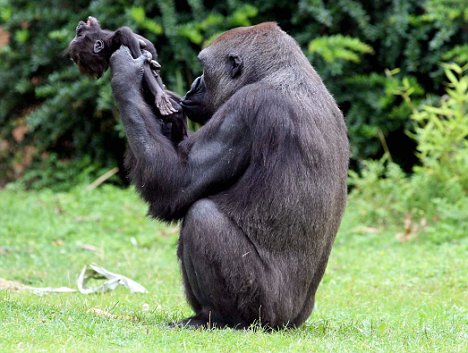 11歲的母猩猩加納上周六在猩猩園里抱著她已夭折的三個月大的兒子克勞迪奧,她將失去生命跡象的小猩猩舉起,目光里流露出震驚和不解,她無法接受她的孩子已死亡的事實。母猩猩所表現(xiàn)出來的不可抑制的痛苦與任何一位失去孩子的母親所感受到的悲痛非常相似。盡管自然界有它的殘酷性,但加納和她兒子克勞迪奧打動人心的場景看起來表明,動物王國的成員也能像人類一樣感受到失去親人的痛苦。