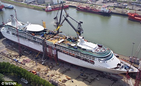 中新網(wǎng)8月26日電 綜合報(bào)道,把游輪“一刀兩斷”,然后再塞進(jìn)去一節(jié)船艙,繼而拼裝成一艘“擴(kuò)大版”的客輪,這樣的“大刀闊斧”可不是幻覺(jué),這艘長(zhǎng)916英尺游輪的主人確實(shí)將船鋸開(kāi),要將其再擴(kuò)展73英尺。