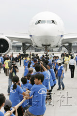 家長(zhǎng)們加入進(jìn)來后機(jī)體才稍稍移動(dòng)了數(shù)米,大家頓時(shí)擊掌歡呼。來自千葉市的小學(xué)二年級(jí)學(xué)生堀江昌大(8歲)睜大眼睛說,“手很痛,看到飛機(jī)真的動(dòng)了大吃一驚”。
