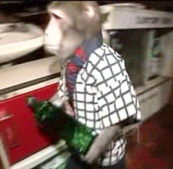猴子服務生為顧客端茶送水。