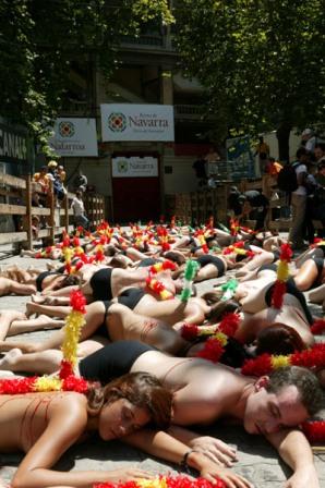 中新網(wǎng)10月10日電 綜合報道,善待動物組織(PETA)的活動家9日在歐盟議會總部門前裸體抗議歐盟支持斗牛活動?棺h者通過裸體抗議的方式,希望能引起人們的關注。