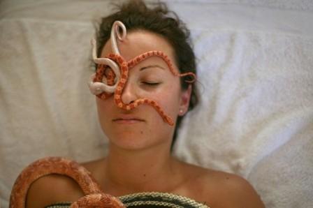 據(jù)悉,顧客之所以敢嘗試蛇式按摩,是因為他們相信一旦克服了最初的疑慮心態(tài),那么他們便會發(fā)現(xiàn)與動物的身體接觸完全可以令自己的心靈受到撫慰,并進而變得輕松自如。