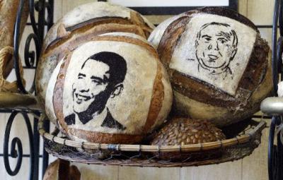 把大選候選人頭像烤上面包,這一創(chuàng)意目前在眾多的面包房間流傳開來。