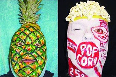 據(jù)報(bào)道,從今年3月開始,詹姆斯每天都喜歡用油彩往自己臉上畫一幅不同的畫,這些畫都畫得非常逼真。當(dāng)他往臉上畫一個(gè)菠蘿時(shí),很多人乍一看還真以為他腦袋上長出了一個(gè)菠蘿。詹姆斯稱,他是看到有些人每天都為自己拍攝一張照片后,才有了這個(gè)想法的,“臉色天天變,那將是一件多么有趣的事。”