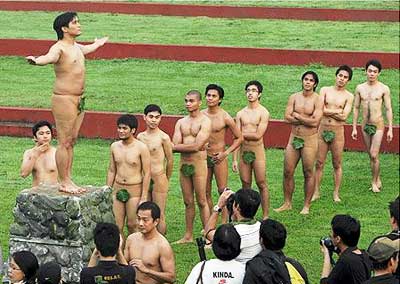 中新網(wǎng)12月15日電 據(jù)新加坡《聯(lián)合早報》報道,菲律賓大學(xué)日前為慶祝創(chuàng)校一百周年,在校區(qū)內(nèi)舉行年度裸體活動。共一百名男性學(xué)生、老師和校友,僅穿著縫有綠葉的肉色內(nèi)褲,輪流站在石臺上,張開雙手模仿校內(nèi)知名裸體雕像,象征對真理和知識無止境的追求。