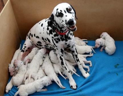 中新網(wǎng)1月8日電 據(jù)英國(guó)媒體報(bào)道,英國(guó)一條3歲斑點(diǎn)狗日前一次產(chǎn)下了18只小狗,去年它已經(jīng)有了16只小狗。