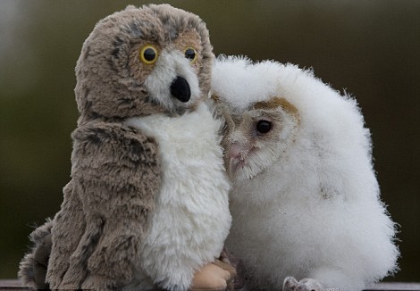據(jù)英國(guó)《每日郵報(bào)》報(bào)道,一只僅有數(shù)周大的谷倉貓頭鷹孤兒與一個(gè)貓頭鷹填充玩具成了好朋友。