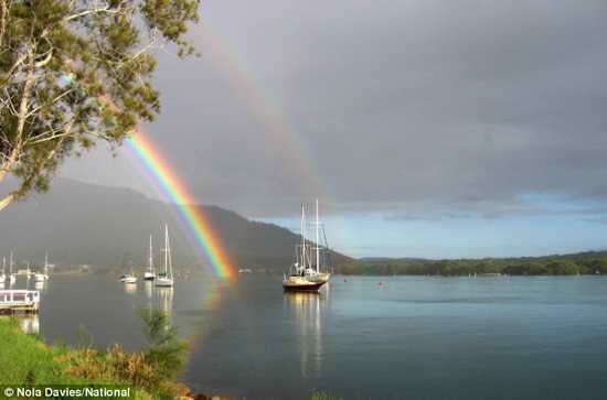 據(jù)英國(guó)《每日郵報(bào)》報(bào)道,澳大利亞業(yè)余攝影師諾拉-戴維斯稱(chēng),她拍到了一張有六道彩虹美景的圖片,六道彩虹出現(xiàn)在她家附近的一個(gè)平靜的湖面上。